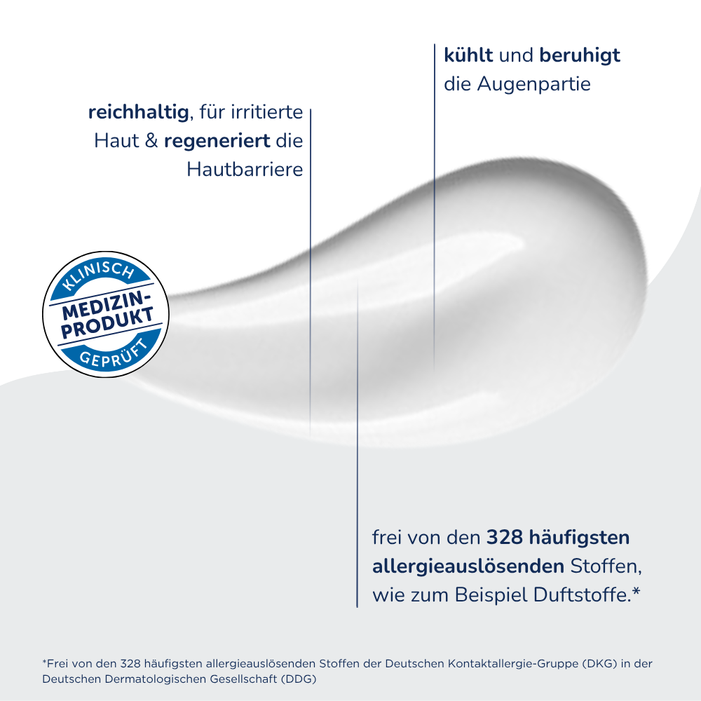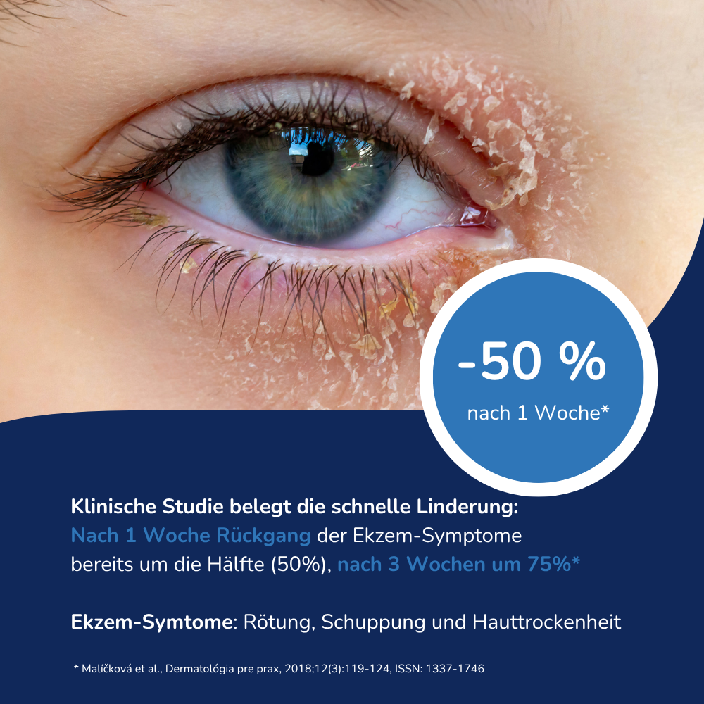 - Schnelle Linderung: Reichhaltige Formulierung für sensible Haut, ideal bei atopischem, kontaktallergischem und irritativem Augenlidekzem.