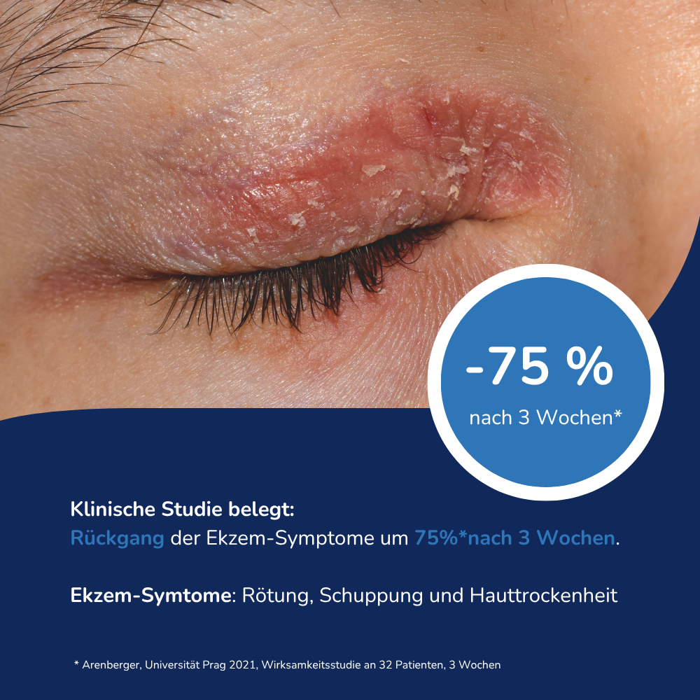 - Klinisch belegte Wirksamkeit: 75 Prozent Rückgang von Rötung, Schuppung und Hauttrockenheit nach 3 Wochen.